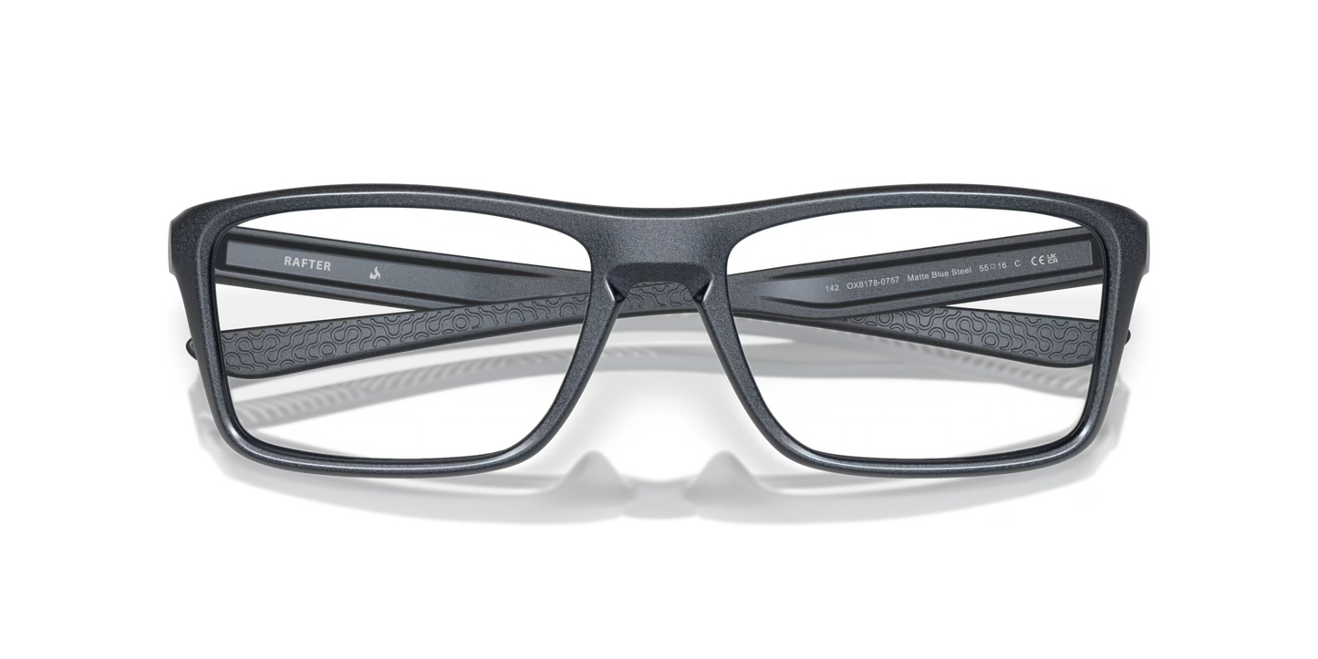 Výrazná a vším, jen ne základní, kolekce Rafter je celoobrubová, obdélníková evoluce oblíbené řady Oakley Plank. Modernizovaný styl vás odlišuje, zatímco lehký materiál rámu O-Matter™ vám umožní relaxovat dle libosti s celodenním pohodlím. A proslulý systém tříbodového uchycení Oakley posouvá pohodlí ještě dále. K dispozici s dioptrickými čočkami Oakley Authentic Prescription, které jsou opatřeny laserově vyrytým logem elipsy na levé čočce, což dokazuje autenticitu a kvalitu Oakley.